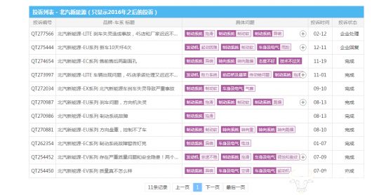 不过,北汽新能源公司销量虽让其他新能源公司难以望其项背,但其汽车质量也十分令人堪忧,其造车目的让人遐想不已。在汽车投诉网上,从2016年之后到今日,有66条有关北汽新能源汽车的投诉。其中,EU系列有32条车主投诉记录,EV系列13条,EX系列有10条,其他11条。