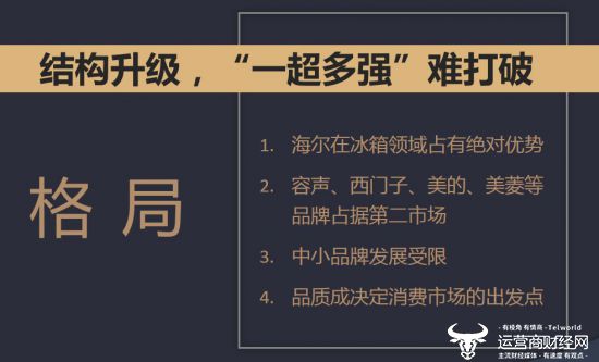 同时,运营商财经网还指出,就冰箱市场来说,中小品牌发展受到很大限制。由于大品牌家电的口碑、质量、以及售后服务均有所保证,因此消费者在购买家电时往往会倾向于知名品牌,这使得中小品牌的发展受到了一定程度的限制。