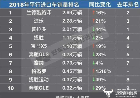 同时,在一份“2018年平行进口车十大销量榜”还发现,丰田普拉多2018年销量仅有2.01万辆,比2017年下滑了44%。销量下滑如此严重,被途昂力压一头也理所当然。