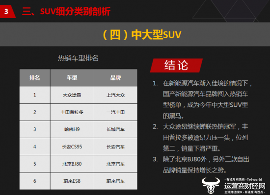 近日,运营商财经网发布了《2018年汽车领域数据分析报告》(以下简称“报告”),分析了2018年整个汽车行业的发展情况。其中,在中大型SUV热销车型排行榜中,上汽大众途昂第一,有“越野王”美誉的一汽丰田丰田普拉排在第二。