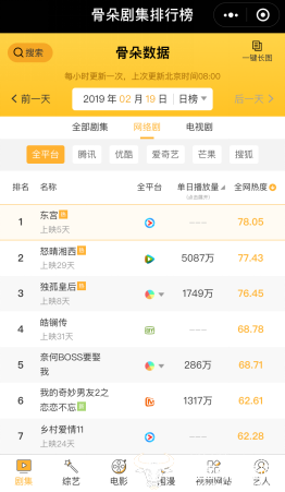 “忘川之水,在于忘情。”2月18日晚,正在优酷热播的古装言情剧《东宫》,第10集再现原著中的经典场景——男女主纵深跳下忘川以求忘情,以首个剧情高潮正式揭开了故事由甜转虐的篇章。“李承鄞 渣”等话题再次登上热搜榜。该剧上线仅5天,就登顶骨朵网络剧全网热度榜首,成为继《知否》后2019年剧集市场又一爆款。