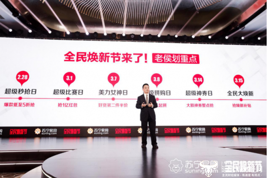 315临近,2月26日,苏宁易购召开全民焕新节媒体发布会。全民焕新节,是电商行业开年推出的首场重量级大促,以家电、3C、家装厨卫、生活家居、百货、超市等品类的上新为主,围绕以旧换新、服务用心,全面抢跑3月,打造上半年双十一。