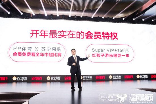 全民焕新节是苏宁成立五大商品集团后的首个重量级大促,多业态间深度联动,会员增值权益成为焕新亮点。如,成为PP体育和苏宁易购联名会员,全年240场中超比赛免费看,Super VIP只要花150元,就可以带娃到红孩子游乐园耍一年。
