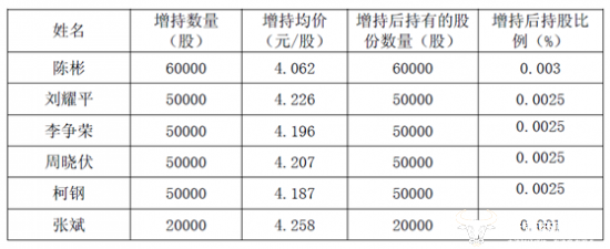 增持主体:公司董事兼总经理陈彬、监事刘耀平、副总经理李争荣、副总经理周晓伏、财务负责人柯钢、董事会秘书张斌及部分员工。