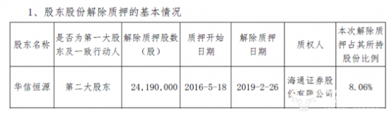 截至本公告披露日,华信恒源共持有公司股份3亿股,占公司总股本的29.44%。华信恒源持有公司股份累计被质押268629597股,占其所持本公司股份的89.54%,占本公司总股本的26.36%。