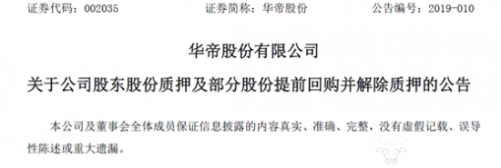 华帝股份有限公司发布了关于公司股东股份质押及部分股份提前回购并解除质押的公告。