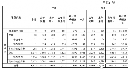 公告称,2019年2月东风汽车总产量为9027辆,同比增加7.07%;总销量为6109辆,同比增加21.96%。其中,基本型乘用车产销量均为零。