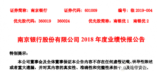 2019 年 3 月 5 日,南京银行股份有限公司(以下简称“南京银行”)发布 2018 年度业绩快报公告。