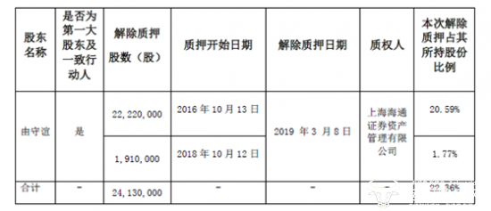 公告称,烟台东诚药业集团股份有限公司于2019年3月11日收到公司实际控制人由守谊(以下简称“东益生物”)的通知,由守谊将其持有的本公司股票在中国证券登记结算有限责任公司深圳分公司办理完毕了部分股权解除质押手续,具体情况如下: