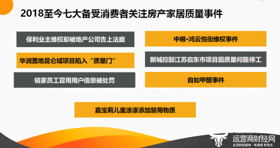 3月14日,运营商财经网举行了2019财经TMT行业315质量报告发布会,会上发布了多行业领域报告,其中盘点了2018至今七大备受消费者关注房产家居质量事件。