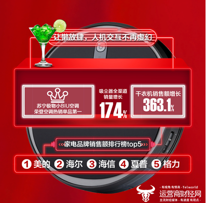 焕新节期间,零售云苏宁易购县镇店销售提升326.8%,覆盖超过1.4亿乡镇居民。成都、郑州、杭州、重庆、西安、沈阳、北京、天津、石家庄、武汉的县镇居民,购买力排名前十。零售云与美的空调头等舱战略显成效,美的成为小镇居民最喜欢的品牌。