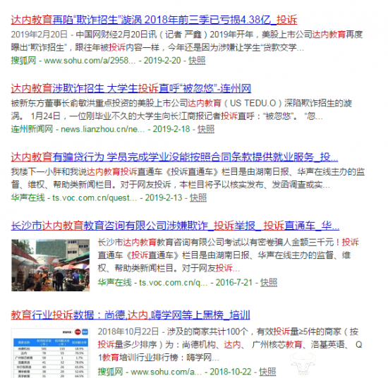 不过联系近几年来达内教育频频爆出的丑闻,其如今急进的业务转变似乎便有迹可循了。近两年来,达内教育频频遭遇消费者的投诉,而投诉内容大都相似,即涉嫌欺诈招生,让学生贷款交学费。