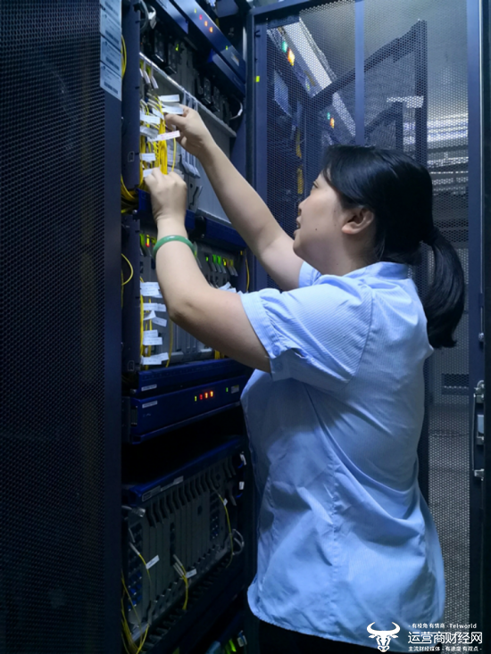 孙光艳在机房查看设备运行情况