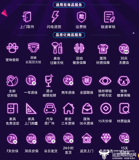 除了“闪电退款”等通用类商品服务,“放心购”还推出众多品类化商品服务。
