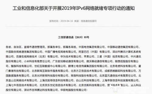 另外,2019年的主要目标还包括:获得IPv6地址的LTE终端比例达到90%,获得IPv6地址的固定宽带终端比例达到40%;完成全部13个互联网骨干直联点IPv6改造。
