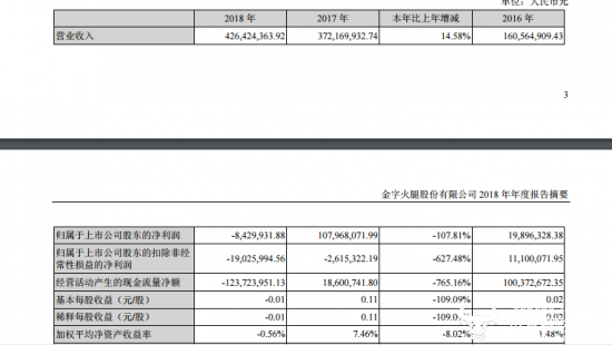 报告显示,报告期内,金字火腿2018年实现营业收入4.26亿元,同比增长14.58%;归属于上市公司股东的净利润为负842.99万元,同比下降107.81%;而营业成本同比增长16.63%。