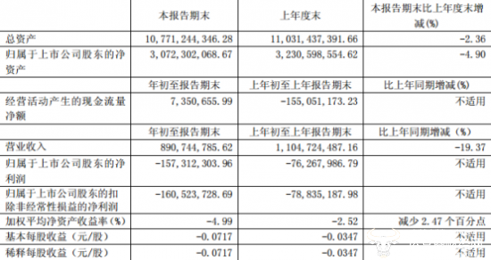 具体来看,一季度公司实现营收8.91亿元,同比下滑19.37%;实现净利润-1.57亿元,较上年同期亏损增大。另外,公司实现净资产30.72亿元,较上年末减少4.9%。从财报来看,基本都处在亏损状态,公司业绩面临较大压力。