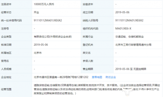 此外,据相关信息显示,新成立的北京大运通泰物流其主要经营范围是道路货物运输、仓储服务、装卸服务、物流技术开发即技术服务。