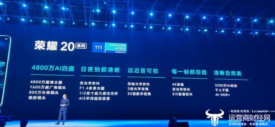 据了解,此次荣耀20系列号称年度最强拍照手机,极具竞争力的拍照水准,让荣耀20系列也很有底气。据赵明介绍,荣耀20系列搭载4800万像素超高清AI主摄,荣耀20 PRO更是搭载了业界最大F1.4光圈、1/2英寸超大感光原件、超高ISO感光度、双OIS四轴光学防抖等诸多硬核科技。
