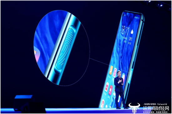 荣耀20系列的美,不止一面。机身正面,荣耀20全系采用6.26英寸魅眼全视屏,将摄像头完美隐藏在屏幕下,荣耀20系列前置摄像头孔径仅4.5mm,是目前行业内最小孔径,处于绝对领先的水平。屏下摄像头的位置在屏幕左上角信号栏左侧,完美地避开了屏幕显示的核心区域,高达91.7%的屏占比,打造出极致沉浸式全面屏体验。此外,结合荣耀20系列魅眼全视屏左上角镜头的特性,独家定制的艺术性桌面主题壁纸与之交互,壁纸与摄像头相辅相成融为一体。为了让手机机身更加的完整,荣耀20系列还采用指纹和侧边电源键一体化设计,真正让解锁成为一个不需要思考、自然而然的动作。除了解锁,荣耀还赋予了它新的高科技功能,长按一秒即可唤醒智能语音助手YOYO,进一步方便了手机的使用。