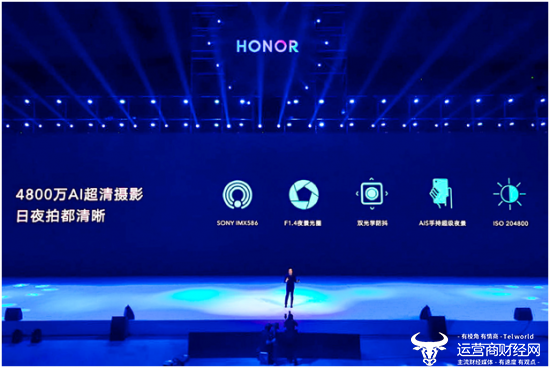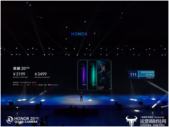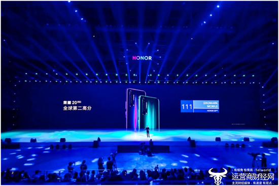 【2019年5月31日】今天荣耀在上海东方体育中心举行荣耀20系列新品发布会,备受期待的荣耀年度最强拍照手机震撼发布。4800万高清主摄、F/1.4业界最大夜景光圈、双OIS四轴光学防抖、3倍光学变焦和最高30倍数字变焦等前沿科技加持,将手机摄影体验推向新的巅峰,并一举赢得DxOMark全球第二高分111分。作为科技美学旗舰代表,在摄影体验全面进阶之余,荣耀20系列在手机光影艺术层面也完成从二维到三维空间的升级,在荣耀20 PRO上搭配“蓝水翡翠”、“幻夜星河”两种幻镜配色,再次引领手机设计新潮流。