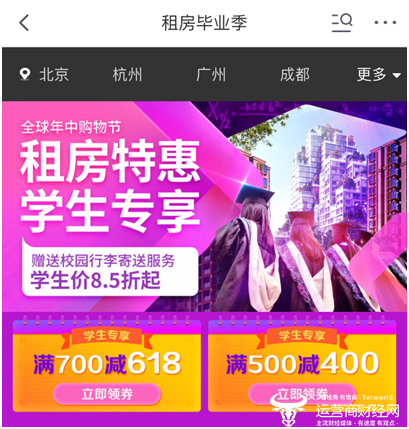 考虑到高校毕业生的租房诉求,在京东618期间,京东房产也针对史上规模最大毕业季推出“毕业季租房专场”活动,联合蛋壳公寓、冠寓、同创公寓、美丽屋、优客逸家等知名品牌公寓,从成本、效率、安全三要素入手,解决毕业生租房难题。
