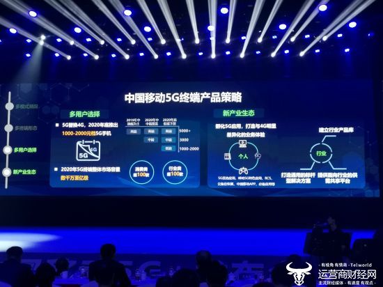 据中国移动自己预测,到2020年5G终端整体市场容量将达到数千万至亿级。