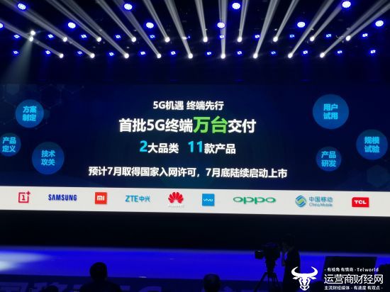 会上,中国移动联合21家合作伙伴发布42款最新5G商用终端及解决方案。本次发布的5G终端最早将于7月底上市,满足5G商用初期消费及垂直行业需求。
