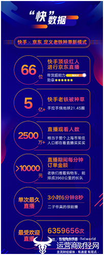 此次“京东618全球年中购物节”,快手携带着强大的直播达人和海量老铁“拔草军团”助阵京东618,多达66位快手顶级红人进行京东直播,覆盖5亿快手老铁,手拉手可以绕地球21.45圈。其中,头部网红表现出色,“散打哥”两场直播总订单额高达1200万,同时,散打哥也成为最受欢迎的直播,共计被打赏6359656次。而“二子爷”则创造了单次直播最久的记录,共计3小时6分钟8秒。这说明,基于平台独有的强社交关系,快手上的达人带货模式已经非常成熟并走向正循环,老铁们边看边买已经成为常态。