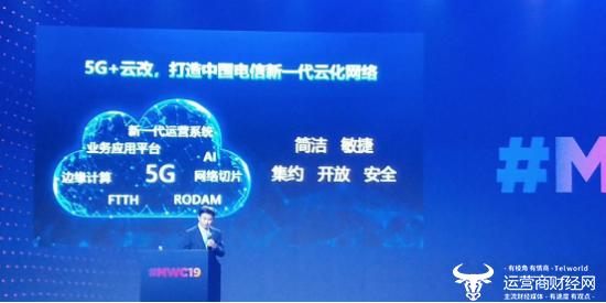 关于如何推动云网融合,柯瑞文提到边缘计算、网络切片等方面,通过管网络以及包括5G在内的各种监管手段,打造具有中国电信特色的新一代云化网络,即简洁、敏捷、集约、开放、安全。