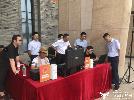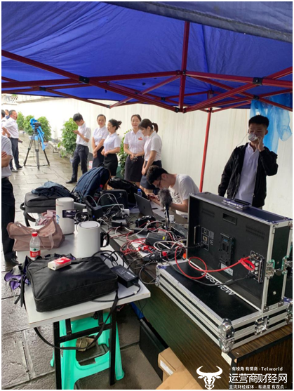 直播团队7月4日到达遵义后,从网络部署情况、讲解区域路径和内容以及机位布置等方面与市公司进行了全方位的交流。夏季的贵州多雨水,5日上午8点,直播设备进场进行安装调试时突然下起了大雨,直播团队的工作人员冒雨进行布置,到中午12点,所有设备调试完成并将现场视频传递到西安主会场,保证了四地联调顺利进行。