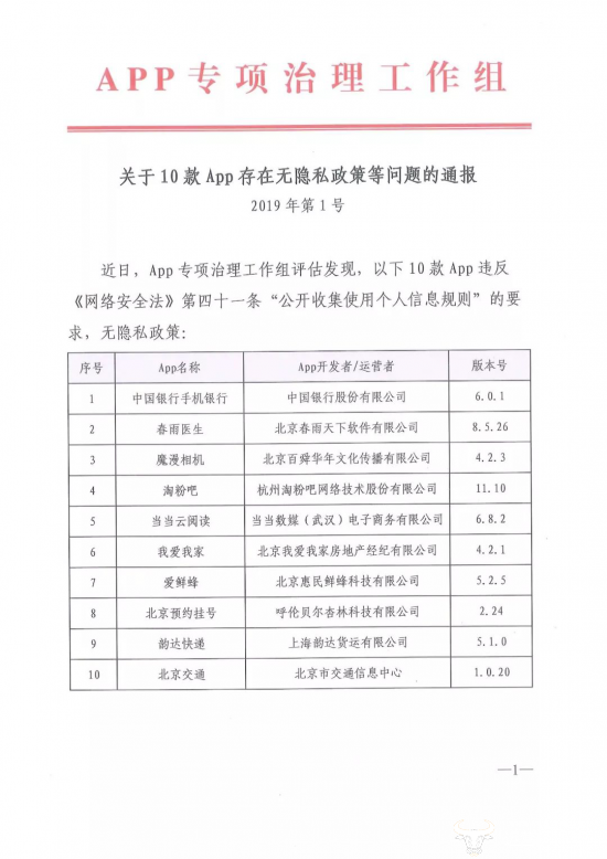 今日,App专项治理工作组公布《关于10款APP存在无隐私政策等问题的通报》(2019年第1号)中,通报了多款违规手机APP应用,其中口碑信誉极好的中国银行手机银行也在其中。真是难以置信,连中国银行都侵犯用户的隐私权利,还有什么可以信任呢?