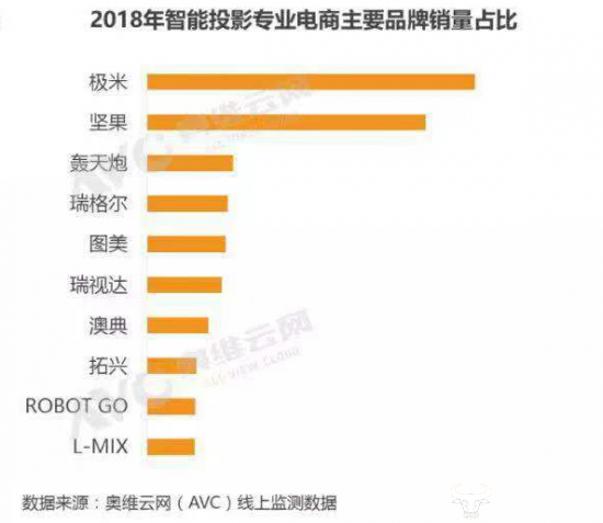 智能投影近两年迎来持续增长。奥维云网数据显示:2018年,智能投影市场零售量为261.2万台,同比增长102%。2019年上半年,中国智能投影市场销量为162.4万台,同比增长45.4%;销额35.9亿元,同比增长39.7%。