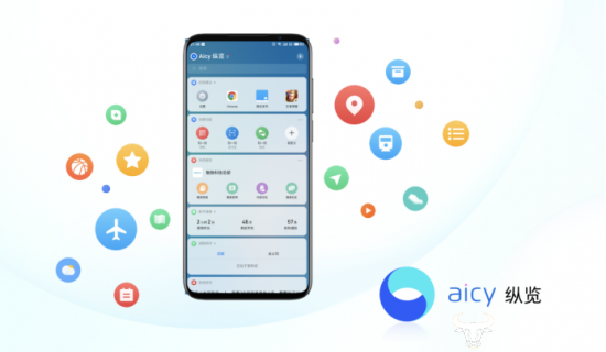 Aicy 纵览:主屏右滑即可进入纵览,天气、日程、使用统计、我的收藏等 20 个垂直类卡片汇聚于一处,汇聚你的关注;
