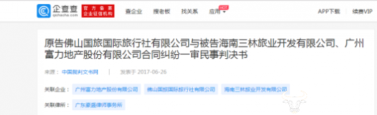 据企查查显示,此次涉案金额不过区区二十万,双方却因谁是过错违约方而纠缠不清,按理说富力地产并不会在这种小事上栽跟头。原告佛山国旅国际旅行社有限公司与被告海南三林旅业开发有限公司、广州富力地产股份有限公司合同纠纷一审民事判决书如下:
