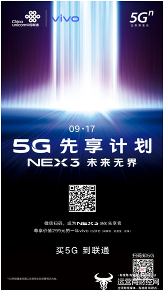 9月16日,中国联通携手vivo再次推出第二款5G智慧旗舰NEX 3。仅隔一天,双方再创惊喜!为了让广大用户抢先“尝鲜”NEX 3 5G手机,享受联通5G的高速网络,9月17日,中国联通在北京、天津、上海、广东、河北、河南、江苏等13省15家营业厅举办5G先享计划活动。