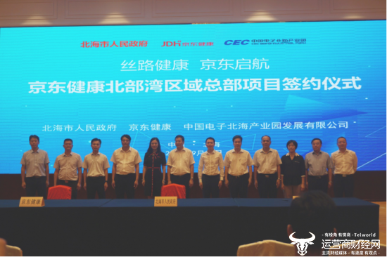 2019年9月23日,京东健康北部湾区总部签约启动仪式在广西北海市举行,京东健康与广西北海市政府、中国电子北海产业园签署“互联网+医疗健康”合作协议,致力于通过合作为北海市人民提供高效、快捷、方便的医药健康服务,推进健康北海建设。北海市政府市委副书记、市长蔡锦军,中电北海产业园发展有限公司董事长索耀宗,京东集团副总裁、京东健康CEO辛利军等人出席了签约仪式。