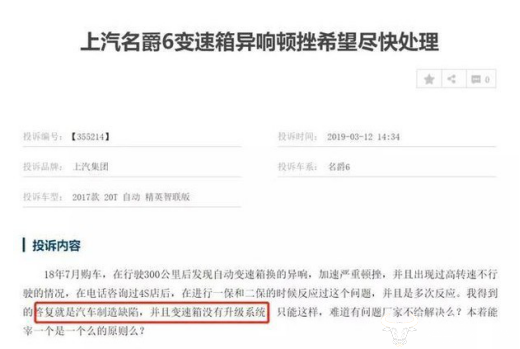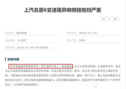 事实上,上汽名爵汽车一直备受诟病,尤其是变速箱被投诉量极高,作为关键配件,上汽名爵多次因变速箱顿挫、抖动、漏油、异响被投诉。2017年,上汽名爵向国家质检总局备案了召回计划,召回了2010年11月15日至2013年1月31日期间生产的3万多辆名爵MG3 AMT车辆,彼时上汽名爵给出的原因就是“变速箱控制模块软件以及变速箱线束质量问题”。不过如今来看,上汽名爵因变速箱出现问题较少,当然这也可能与销量有关。