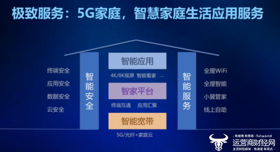 自实施“三化五圈”三年来,中国电信智慧家庭生态圈建设成效明显,中国电信将其看作连接能力价值延伸的重要领域。今年5月,中国电信正式揭牌智慧家庭公司,专业化运营智慧家庭业务,并发布《智慧家庭白皮书》,构建了“五智”为主要内容的智慧家庭体系,提出“智慧家庭应由智能宽带、智家平台、智能应用、智能安全、智能服务组成”的发展理念,并不断延伸、耕耘、突破。