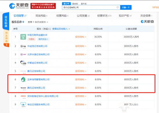 值得一提的是,芝麻信用管理有限公司和腾讯征信有限公司均持有百行征信有限公司8%的股份。而前不久,马化腾卸任了腾讯征信有限公司的法定代表人。