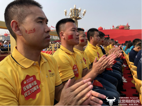 林百兴正在其中。他和他的“战友”们,18位苏宁“火箭哥”,这些平时奋斗在一线的平凡英雄,如今作为全国300余万名快递员的代表,受邀到场见证盛事,着装整齐,洋溢着满满的自豪和幸福。