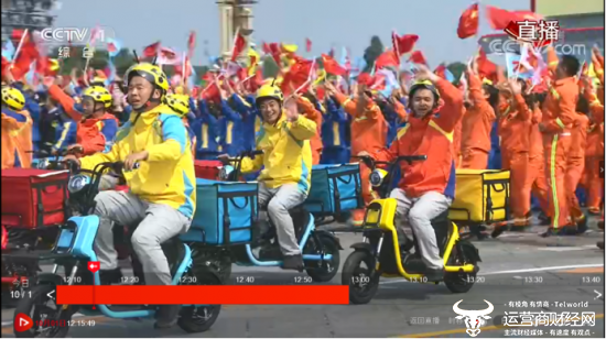 10月1日上午,在天安门广场举行的庆祝新中国成立70周年阅兵仪式上,平日奔走在大街小巷送货的快递小哥们,赫然出现在现场,向全世界展示了中国快递员的风采。