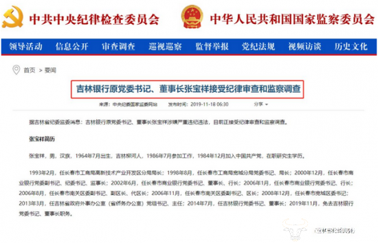 值得注意的是,近几年来,吉林银行屡次出现高管被查情况,张宝祥已不是吉林银行第一位被调查的董事长。