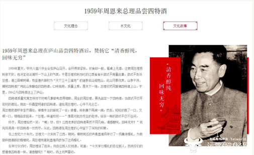 同时,四特酒官网的“四特文化”栏目,也列出了国家领导赞扬的相关信息。其官网官方商城的“四特酒道”栏目的企业简介中,同样有。