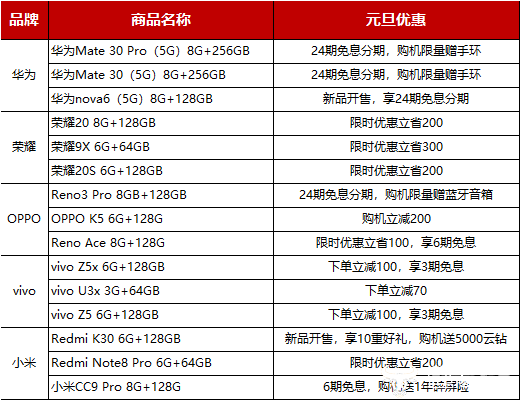 新年第一天,同时也是苏宁华为品牌日,这款华为年度旗舰手机将与全新上市的nova 6(5G)新品共同参与24期免息分期的活动,P30 Pro等华为全系手机也将享受三期免息起,以旧换新最高返600元的活动。