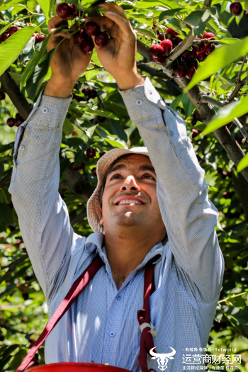 △智利采摘工人正在果园采摘新鲜的车厘子。拼多多年货节期间,智利水果协会将联合平台为中国消费者带来更多优质的智利进口水果。