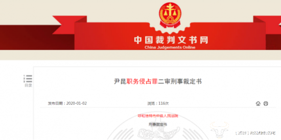 据中国裁判文书网显示,尹昆职务侵占罪二审刑事裁定书部分内容如下:
