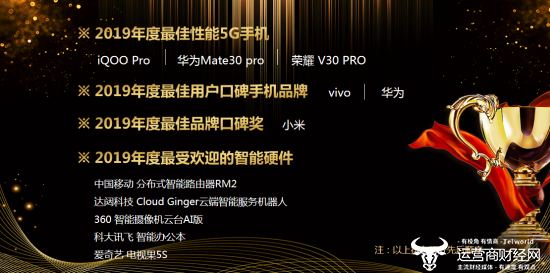 会上,运营商财经网正式公布了“2019年度最受欢迎的智能硬件”奖项,中国移动终端榜上有名,而这也是中国移动终端在本届中国财经TMT“领秀榜”上获得的第三个大奖。