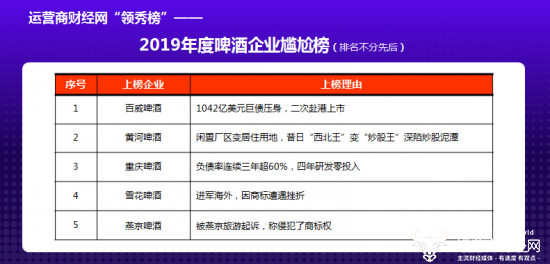 近日,运营商财经网推出了“2019年度啤酒企业尴尬榜”,盘点这一年啤酒企业发展中的窘况。其中,黄河啤酒因其闲置厂区变居住用户、深陷炒股泥潭等事件上榜。