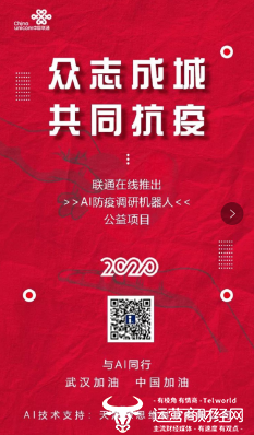 在这个特殊时期,联通在线公司将持续推进“AI防疫调研机器人”公益项目。如有相关需求,您可私信“i秘书”微信公众号,我们将第一时间与您取得联系。